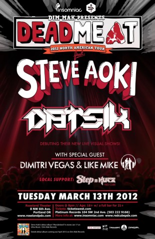 Steve Aoki, Datsik at Roseland Theater in Portland, Oregon on Tuesday, March 13, 2012.