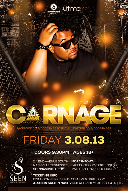 Carnage at Seen in Nashville, Tennessee on Friday, March 8, 2013.