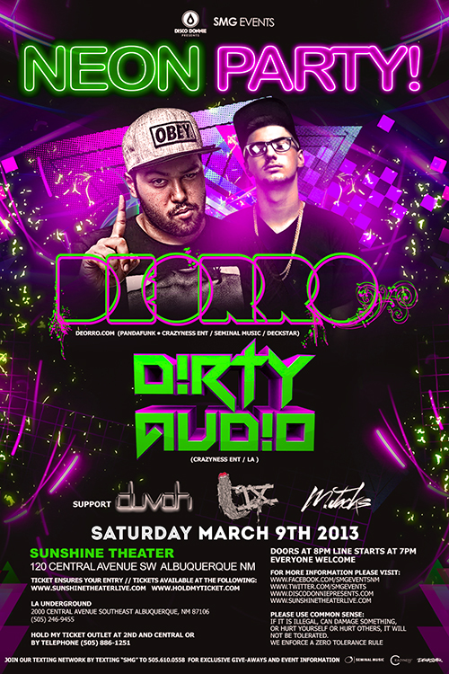 Neon Party featuring Deorro, Dirty Audio at Sunshine Theater in Albuquerque, New Mexico on Saturday, March 9, 2013.