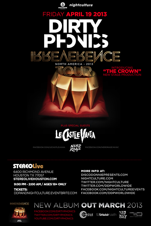 Dirtyphonics, Le Castle Vania, Nerd Rage at Stereo Live in Houston, Texas on Friday, April 19, 2013.