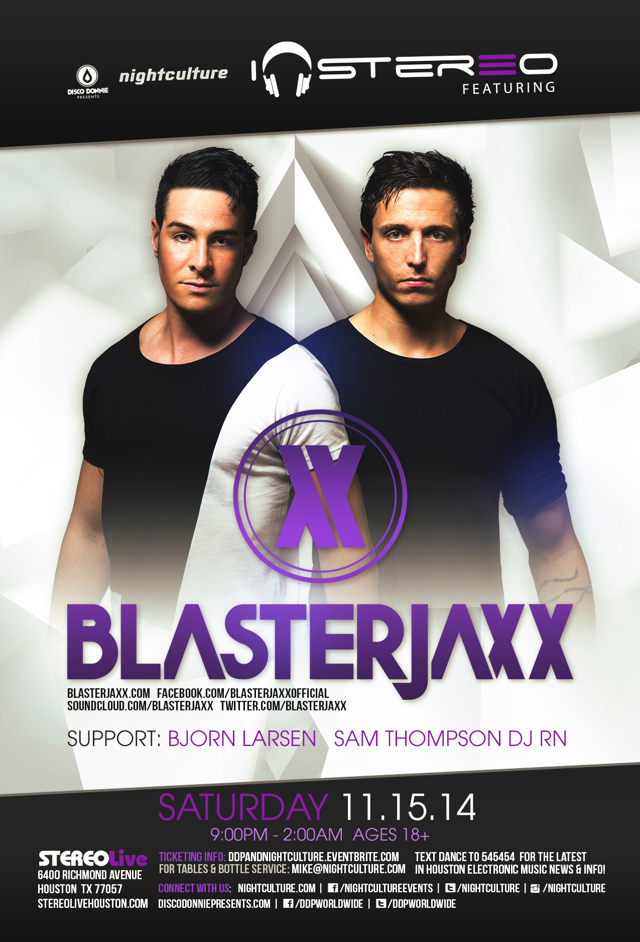 Blasterjaxx at Stereo Live in Houston, Texas on Saturday, November 15, 2014.