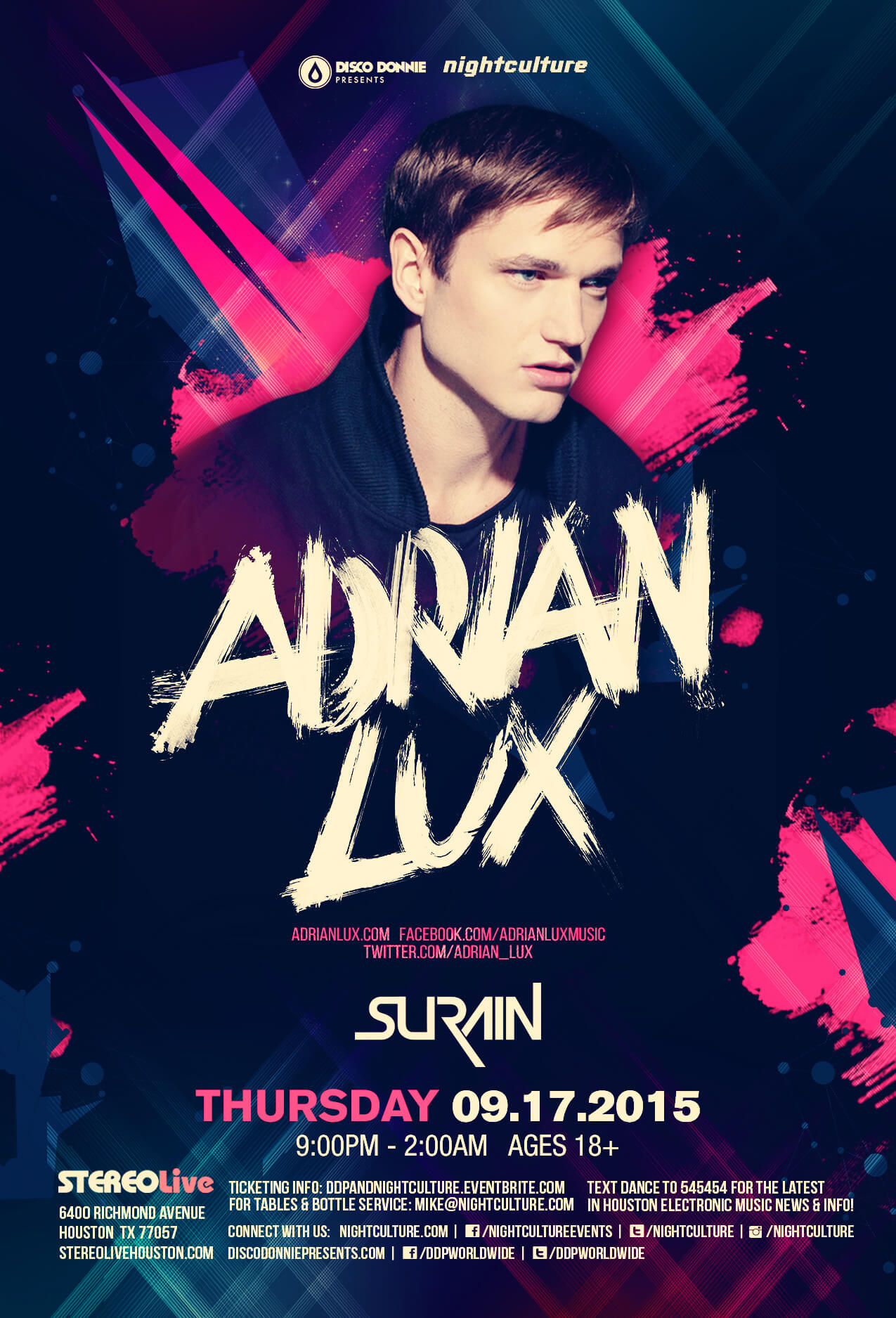 Adrian Lux at Stereo Live in Houston, Texas on Thursday, September 17, 2015.