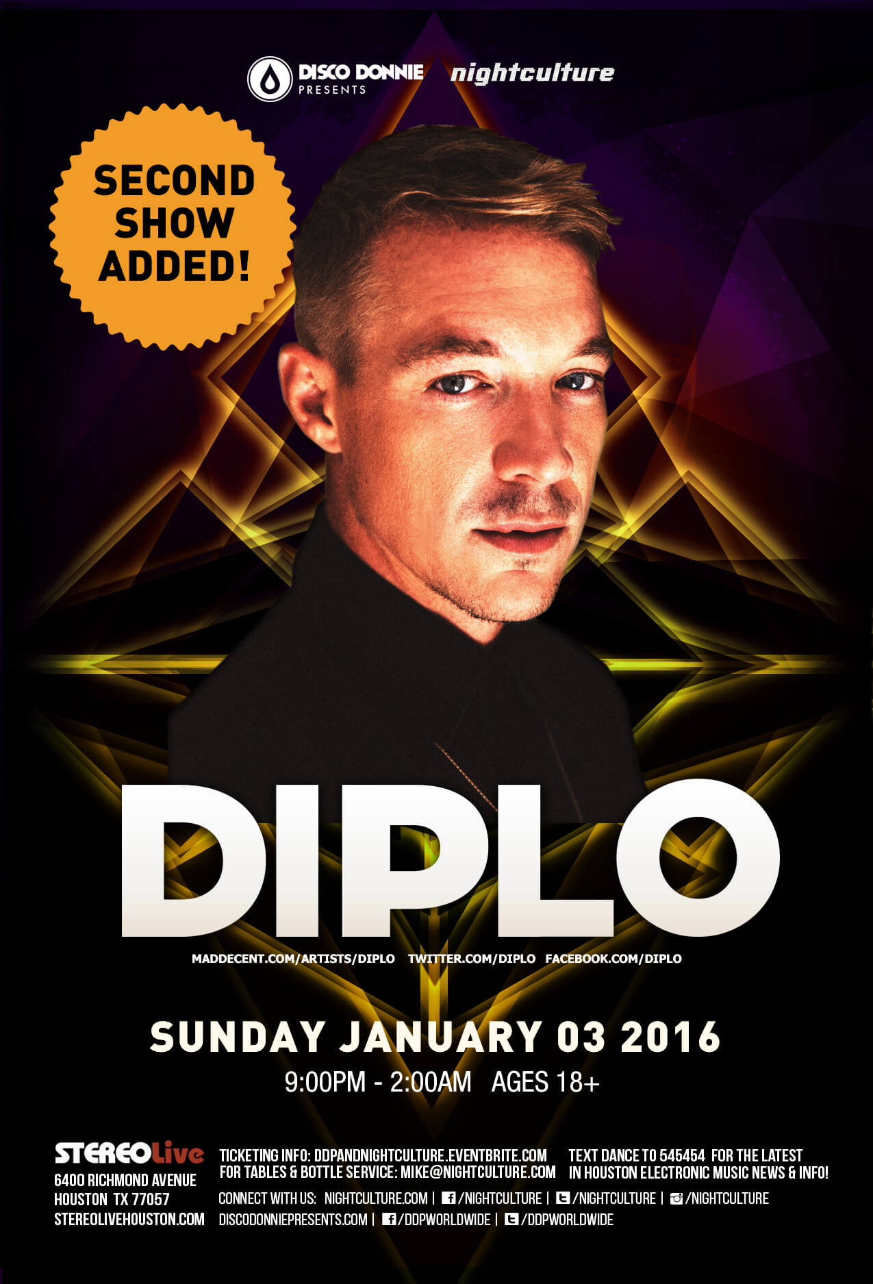 Diplo at Stereo Live in Houston, Texas on Sunday, January 3, 2016.