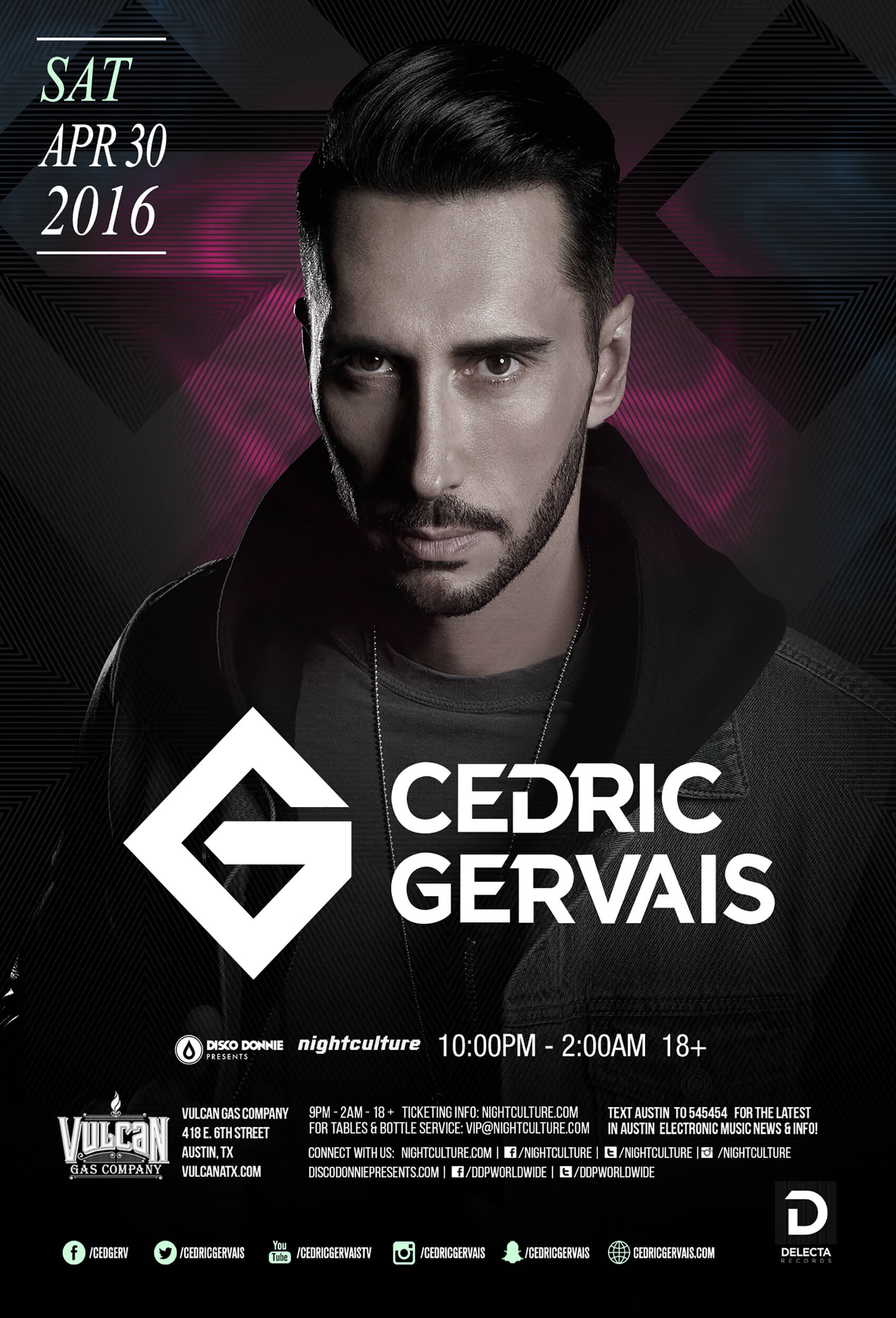 Cedric Gervais at Vulcan Gas Company in Austin, Texas on Saturday, April 30, 2016.