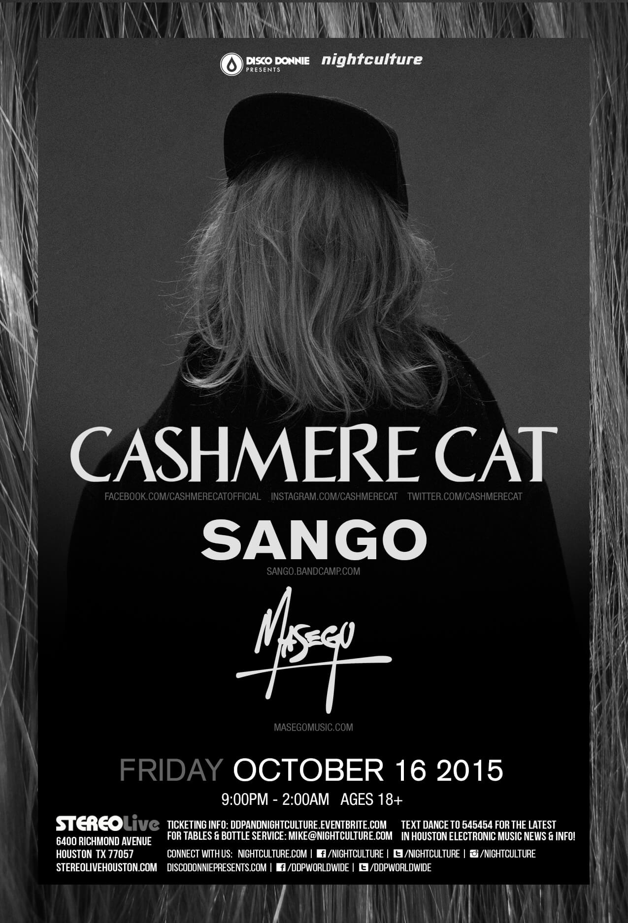 Photos from Masego, Sango, Cashmere Cat at Stereo Live in Houston, Texas on Friday, October 16, 2015. Photos by Julian Bajsel