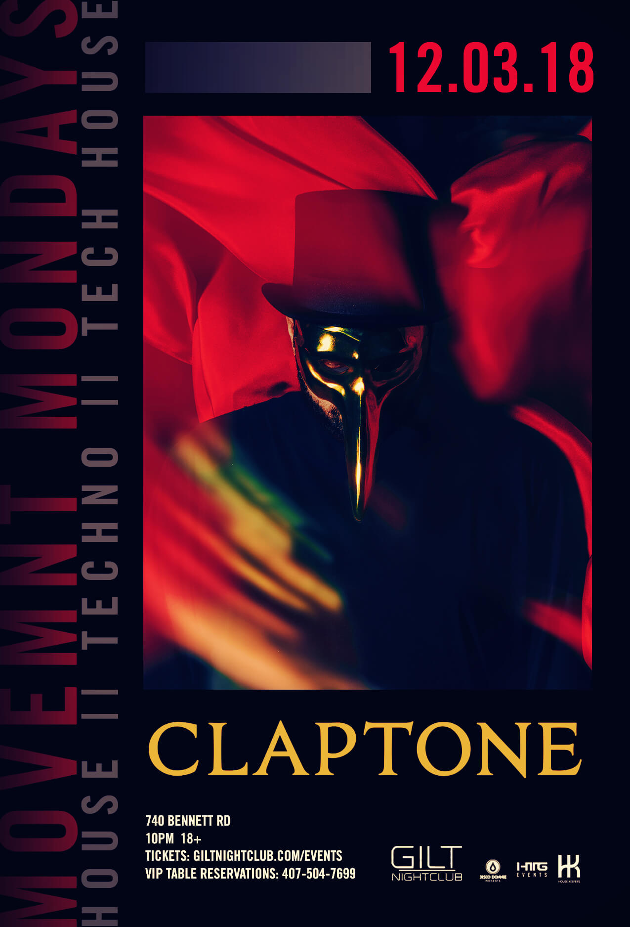 Photos from Claptone at Gilt Nightclub in Orlando, Florida on Monday, December 3, 2018. Photos by David Monteverde